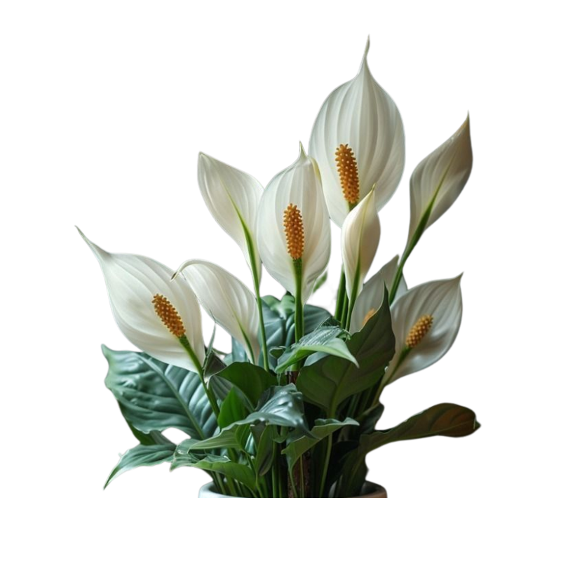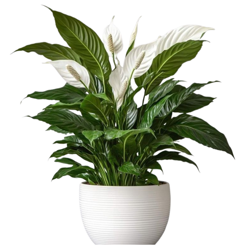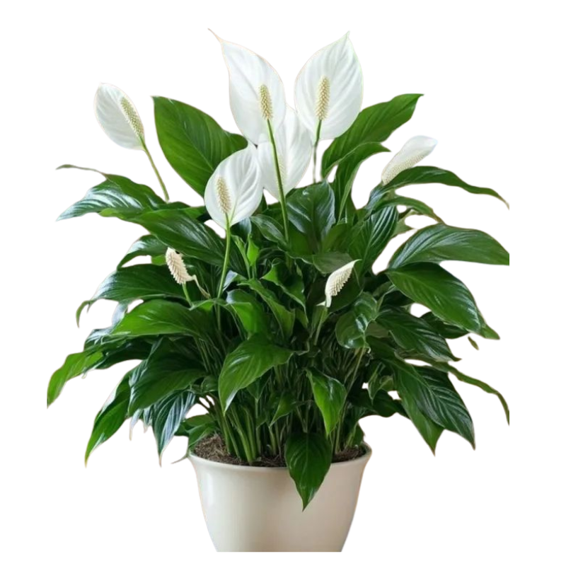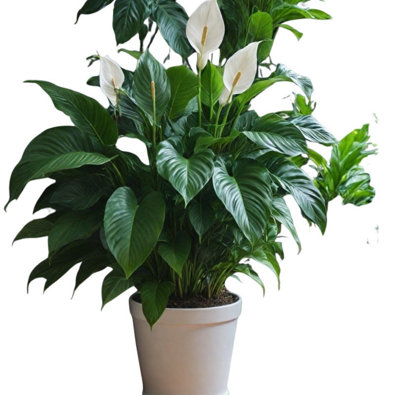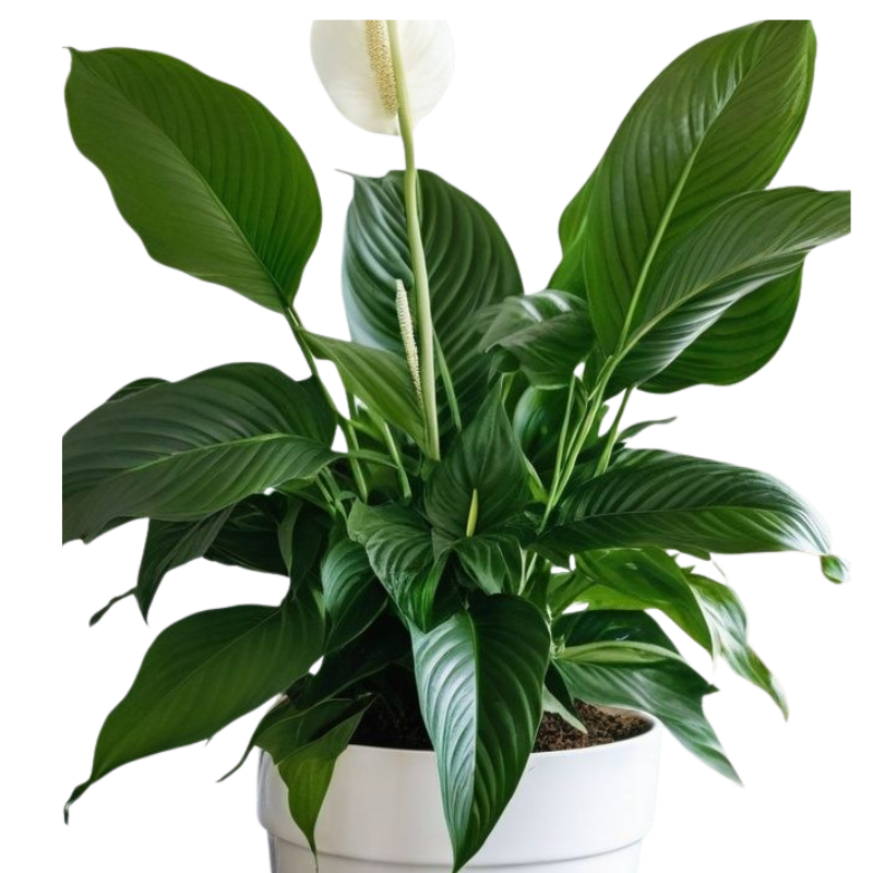 Peace Lily is a popular indoor flowering plant known for its elegant white blooms (actually specialized leaves called spathes) and glossy dark green foliage. It is native to the tropical regions of the Americas and Southeast Asia. This plant symbolizes purity, peace, and tranquility, which makes it a common choice for homes, offices, and even as a gift.